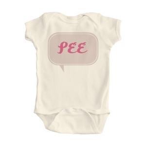 This funny One Piece Bodysuit features a design that reads pee so your little one can let people know what they're thinking about! In addition to the humorous design, this item is made from naturally colored organic materials that are incredibly high in quality. In addition to being soft to the touch for your baby's sensitive skin, this organic One Piece Bodysuit is resistant to wear and tear. This item is available in multiple sizes so you can get just the right fit. Buy today to take advantage of our fast and easy shipping!